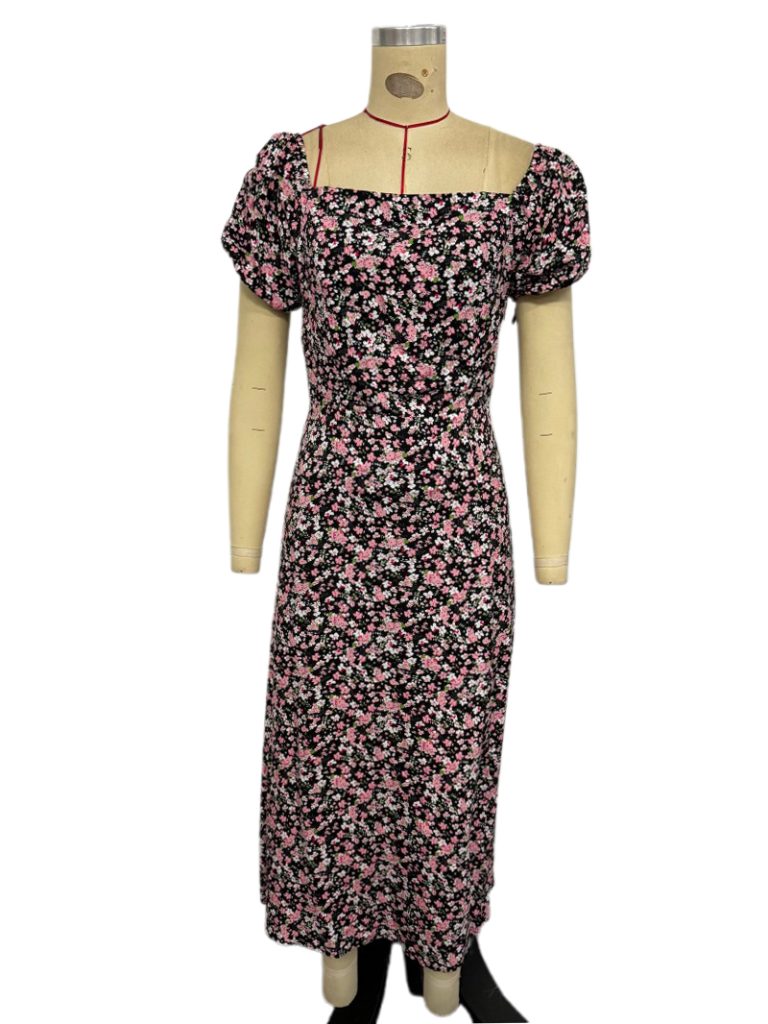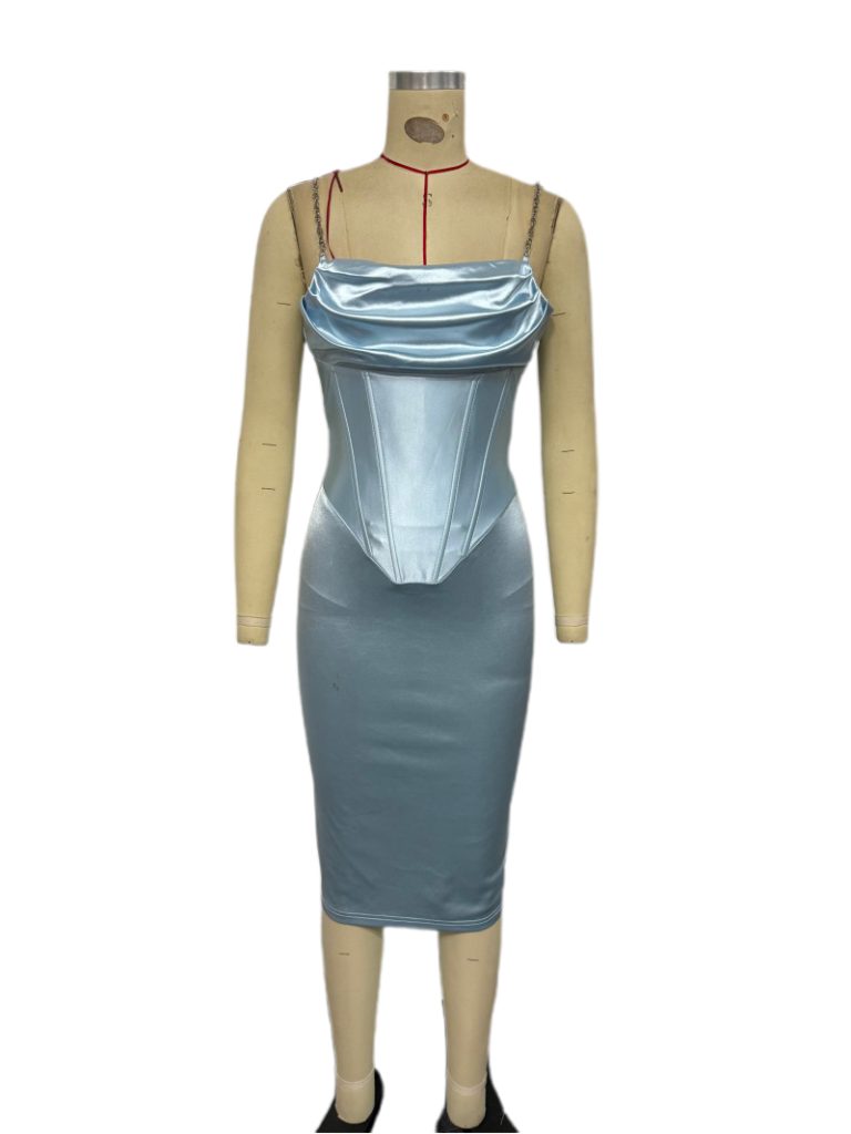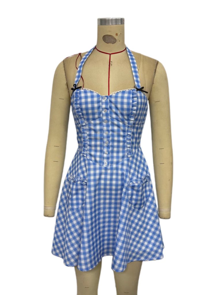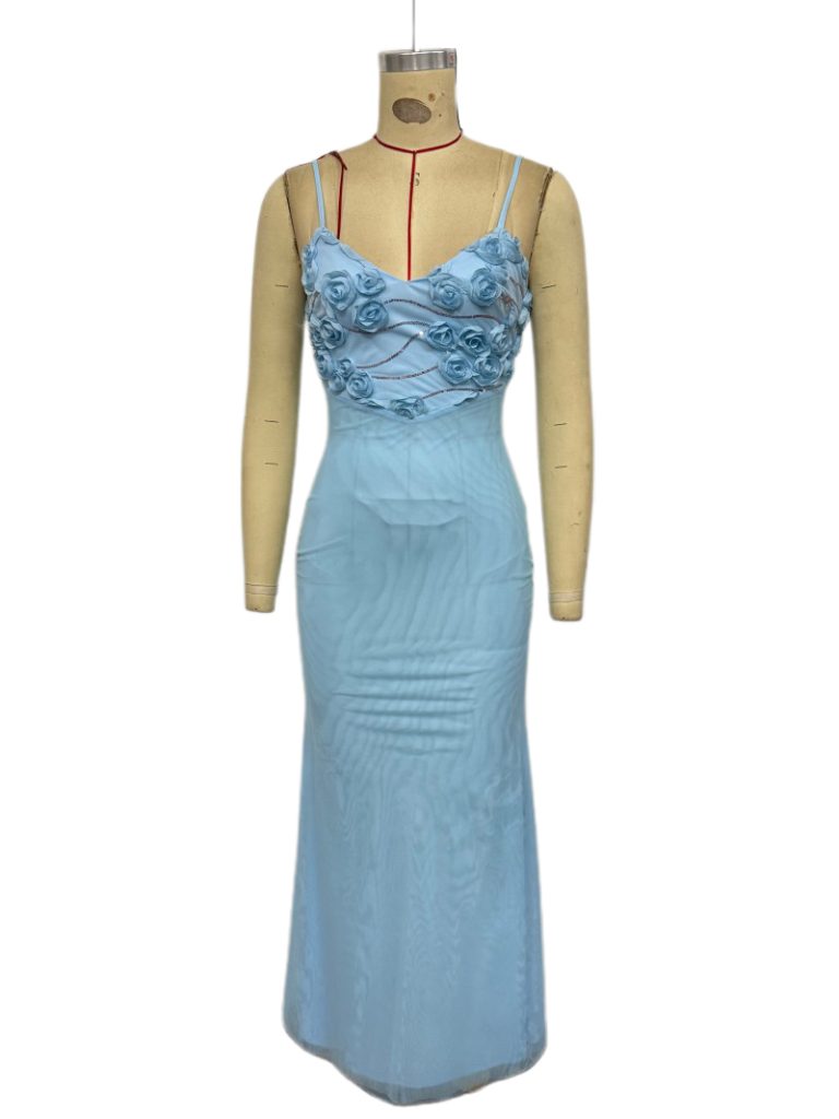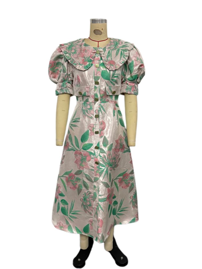Light Blue Brocade Puff – Sleeve Mini Dress