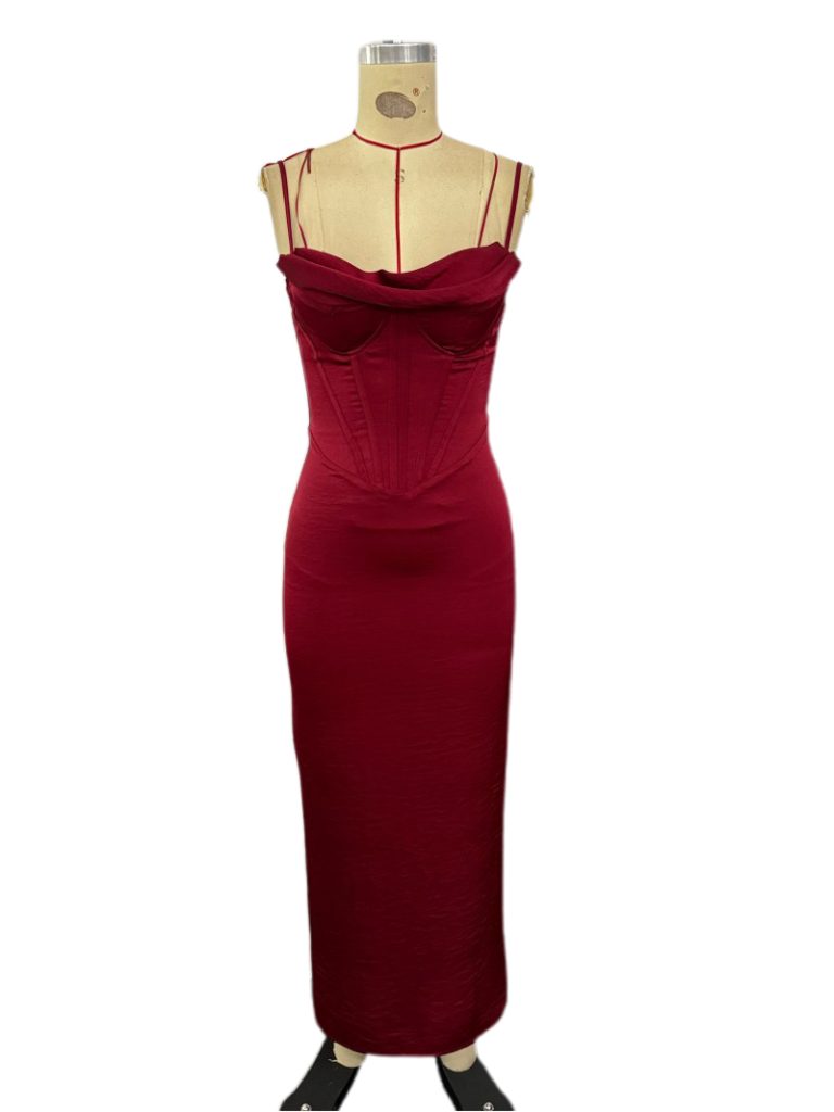 Burgundy Corset – Style Midi Dress