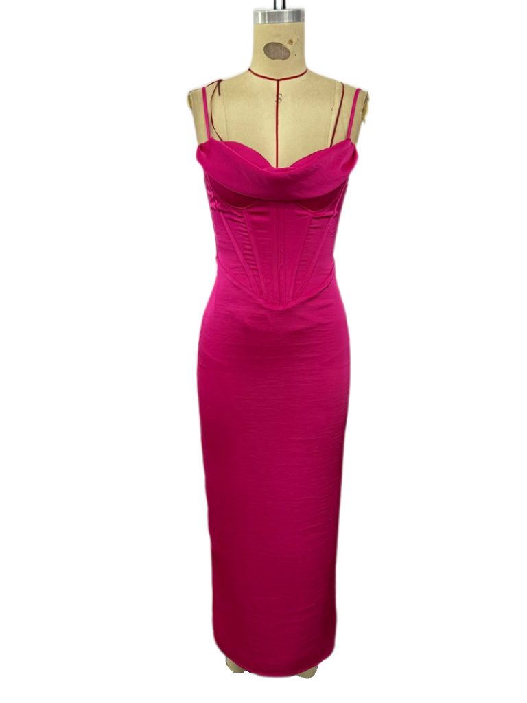 Fuchsia Corset Midi Dress
