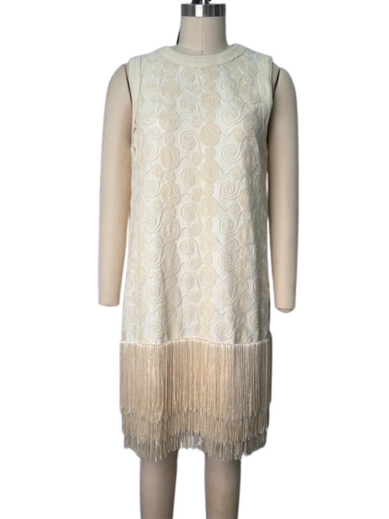 Ivory Embroidered Fringe Hem Shift Dress
