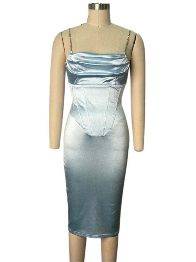 Ombre Satin Corset Midi Dress with Chain Straps