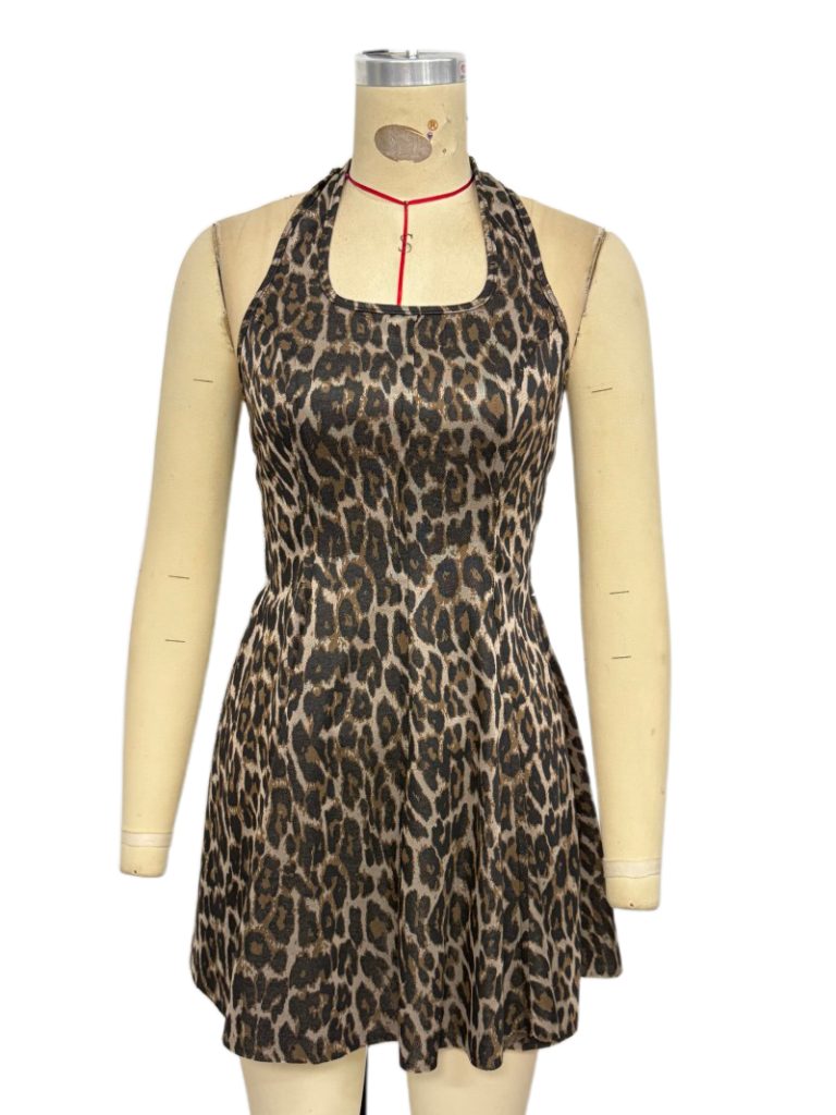 Leopard – Print Halter Neck Mini Dress with Bow Back
